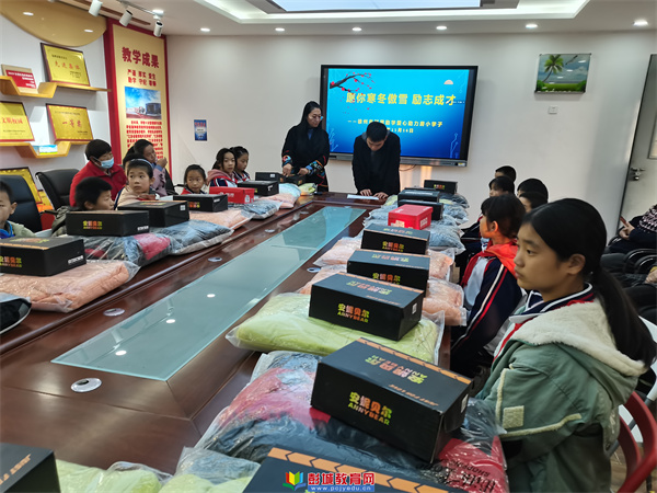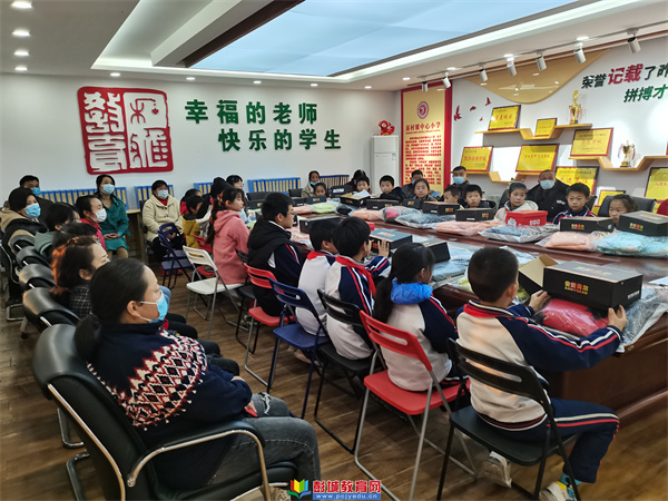 活動中,郝會校長向大家介紹了甘霖助學(xué)團(tuán)隊(duì),并和張陽主任一起為學(xué)生們發(fā)放了兒童棉鞋、棉衣等過冬物品,收到棉服的孩子,臉上洋溢著幸福的笑容。郝會校長鼓勵孩子們大膽發(fā)言,說說自己這一學(xué)期的取得進(jìn)步和今后的打算,把成長的喜悅分享給大家。學(xué)生們踴躍發(fā)言,氣氛熱烈。