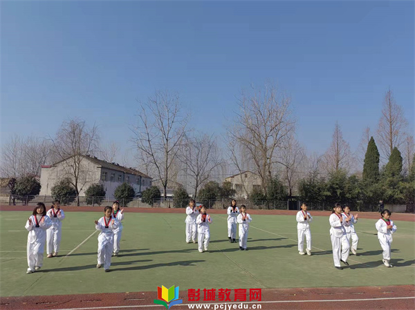 [摘要]:彭城教育:整齊的服裝、莊重的禮儀、響亮的口號、剛勁有力的動作,這是12月21日大課間時候我們看到的一幕。為了迎接特色操表演比賽,學校12名學生,在教練魏主任的動作口令引領下,一起聽著音