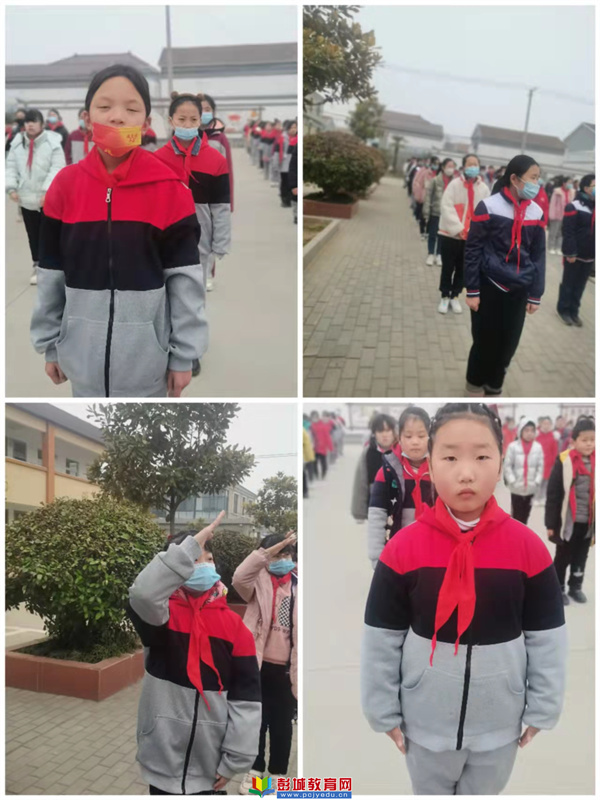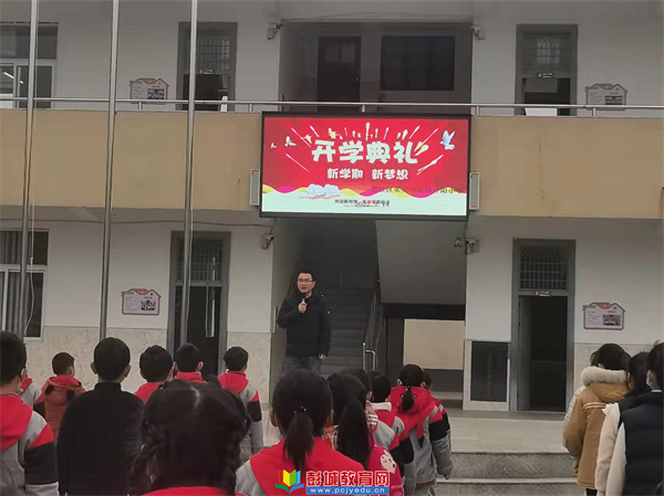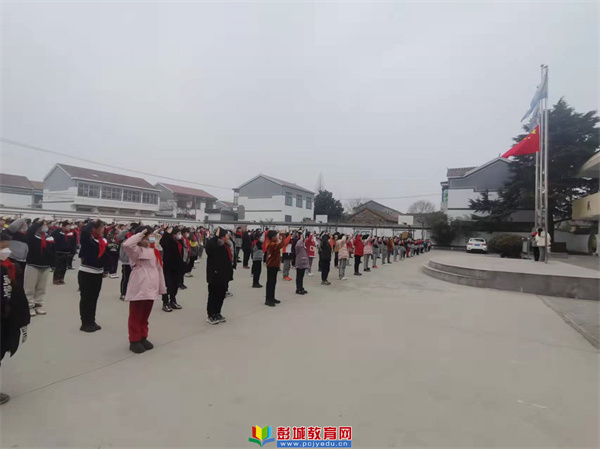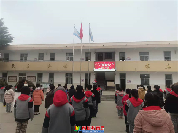 早讀課后學校舉行了隆重的開學典禮。鮮艷的五星紅旗又一次高高飄揚在校園上空。大隊輔導員王玲老師宣布許陽小學2022春季開學典禮開始。