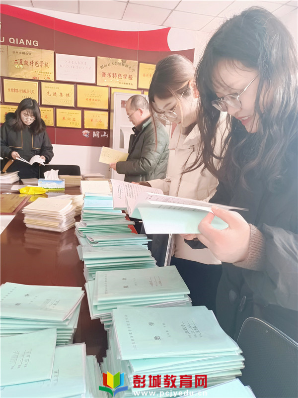 檢查中,老師們一本本細心查閱作業(yè),不時互相交流點評作業(yè)優(yōu)劣,及時寫下優(yōu)缺點。