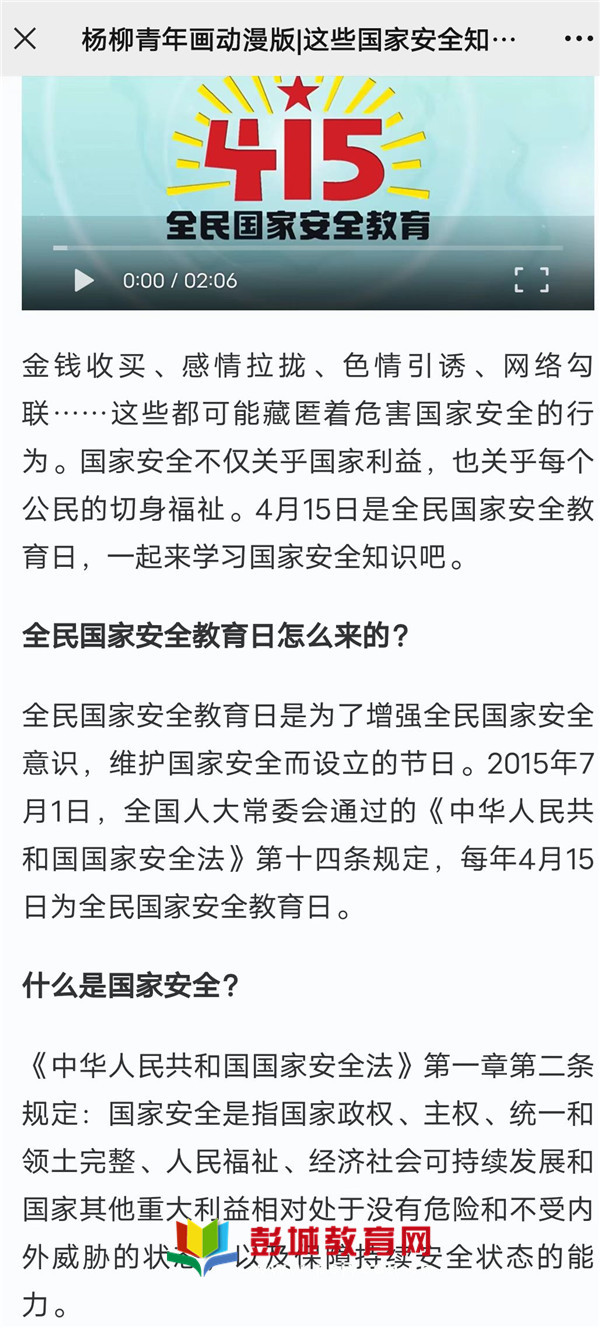 2022年4月15日是我國第七個全民國家安全教育日。為推動國家安全宣傳教育深入開展,進(jìn)一步增強全校師生國家安全意識,前象小學(xué)組織開展了國家安全普法宣傳線上主題活動。