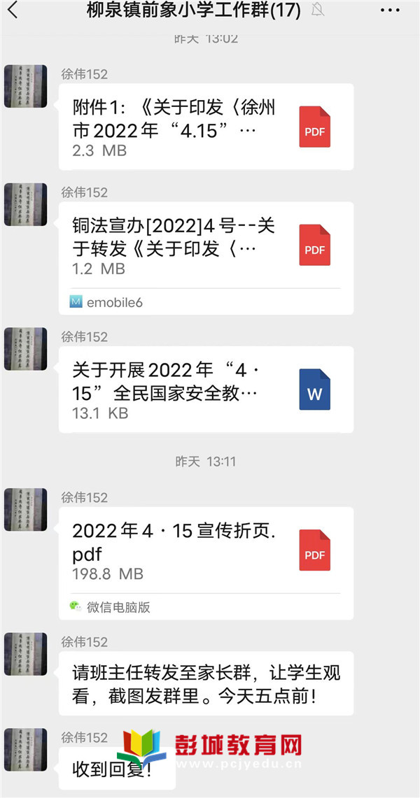 徐校長先是在教師工作群里下達(dá)布置任務(wù),要求所有班主任將學(xué)習(xí)材料發(fā)到各自的班級群里,然后又帶領(lǐng)全體教職工一起學(xué)習(xí)了“國家安全日的由來”、“國家安全包括哪些”以及“哪些行為是危害國家安全的行為”等。