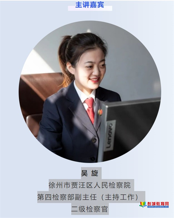 本期課堂的題目是《預(yù)防違法犯罪筑牢安全“網(wǎng)”》,主講嘉賓是來自徐州市賈汪區(qū)人民檢察院第四檢察部副主任吳旋檢察官。吳旋檢察官與主持人一起結(jié)合具體的案例,就“網(wǎng)絡(luò)世界到底發(fā)揮了什么作用?哪些規(guī)則要遵守?哪些陷阱要避開?如何保護(hù)自己的合法權(quán)益?