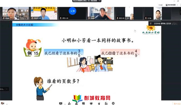 第二節(jié)課是由徐州市大馬路小學(xué)孟凡英老師執(zhí)教的五年級下冊《分?jǐn)?shù)的大小比較》,讓我們見識了原來線上學(xué)習(xí)也可以跟線下學(xué)習(xí)一樣精彩。在課堂中,孩子們暢所欲言,選擇“小主播”主導(dǎo)課堂,孟老師為助教。小周老師講題、同學(xué)們質(zhì)疑、孟老師答惑等這些環(huán)節(jié)都可以有條不紊的進(jìn)行,在這節(jié)課中孩子們獲得了充分的展示機(jī)會。孟老師說:從外面打破的是壓力,從內(nèi)心打破的是成長。