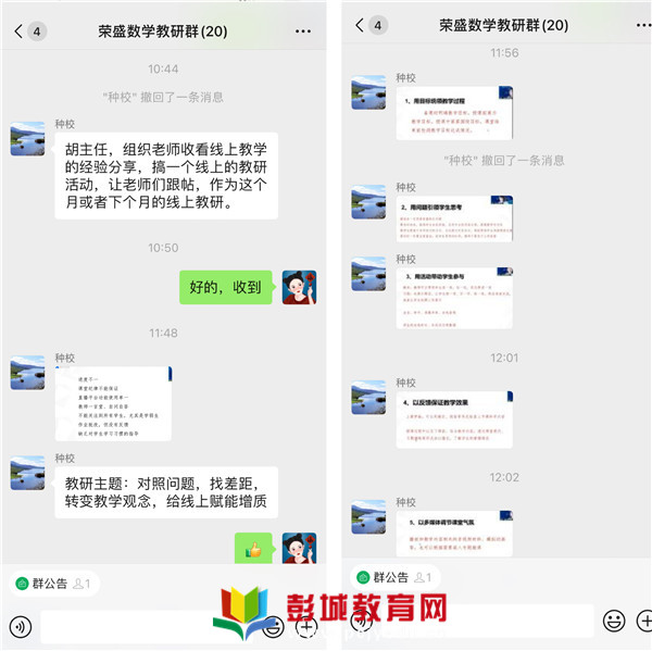 星光小學(xué)榮盛城分校全體數(shù)學(xué)老師和種靜芝校長在市教研室李賀主任的帶領(lǐng)下一起認(rèn)真地邊學(xué)習(xí)邊記錄,切實(shí)學(xué)習(xí)線上教學(xué)的理念,全方位的關(guān)注學(xué)生,轉(zhuǎn)變傳統(tǒng)的教學(xué)觀念,與時俱進(jìn),豐富教學(xué)手段,多媒體多手段多方式的參與課堂,努力還原線下教學(xué)過程,引導(dǎo)學(xué)生深度參與。