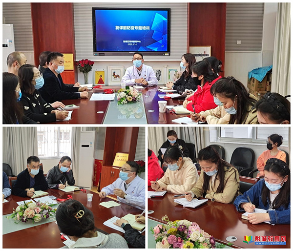 學(xué)校邀請(qǐng)王場社區(qū)衛(wèi)生服務(wù)站陶主任對(duì)大家進(jìn)行了疫情防控知識(shí)的專題培訓(xùn),為全體教師詳細(xì)講解了校園防控的具體措施,例如“校園疫情防控應(yīng)急預(yù)案”“校園疫情防控的要素”“面對(duì)校園突發(fā)情況的解決”等。