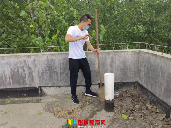 [摘要]: 雨季即將來臨,強降雨天氣將會導致我校樓頂平臺積水,加之泥灰、落葉、雜物等易將屋頂排水管道堵塞。   為應對雨季導致的樓頂管網(wǎng)排水問題,5月25日中午,拐山小學教導處魏禮朋主任親自爬上樓頂,在雨季來臨前,對整個教學樓進行了屋頂下水管網(wǎng)及屋面的全面清理作業(yè)。