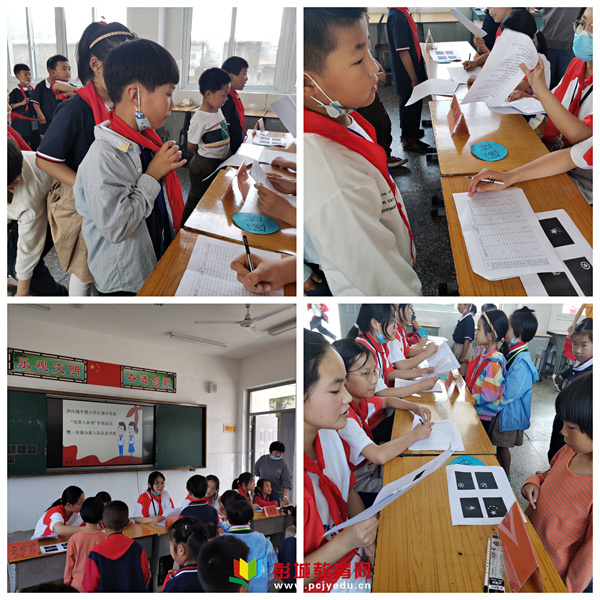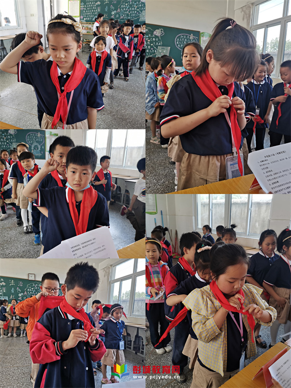 在考核前,中隊輔導員們通過課件展示、講故事、現(xiàn)場示范等一年級喜歡的方式,從少先隊的歷史入手,向一年級的小朋友們介紹了少先隊組織的由來,并帶著大家學習了少先隊的基本知識,隊史、隊章、隊旗等“六知”、“六會”、“一做”。