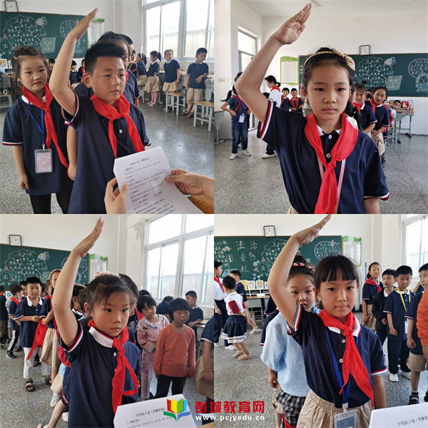 在考核中,高年級的少先隊員們對預備隊員們進行了提問,預備隊員們雖然有些緊張,但是大部分都能大聲說出我們的隊名、隊旗、標志、隊禮的意義、少先隊員的作風等問題,也能獨立完成紅領巾的佩戴、敬隊禮、呼號、入隊誓詞、入隊申請、唱隊歌等六會要求。