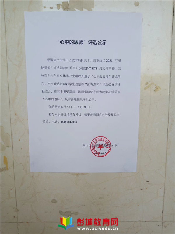 為深入貫徹黨的十九大精神,落實(shí)立德樹人根本任務(wù),加強(qiáng)師德師風(fēng)建設(shè),倡導(dǎo)全社會尊師重教,認(rèn)真貫徹銅教2022第78好文件《關(guān)于開展銅山區(qū)2022年“彭城恩師”評選活動的通知》,徐州市銅山區(qū)張集鎮(zhèn)魏集實(shí)驗(yàn)小學(xué)于6月17日組織舉行了“心中恩師”評選活動?;顒佑晌菏缜坌iL主持,學(xué)校全體六年級學(xué)生參加了評選活動。