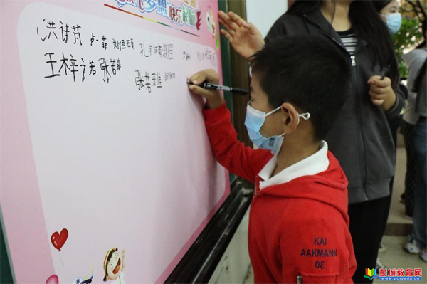 ??孩子們高高地舉起小手,將自己的名字鄭重地印在了班級(jí)的簽名板上!