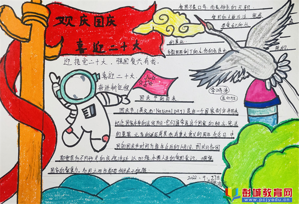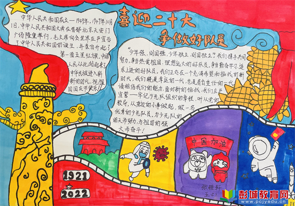 一份份精美的手抄報(bào),一幅幅各具特色的愛國(guó)創(chuàng)作,畫出了祖國(guó)的大好河山,卻畫不盡隊(duì)員們心中對(duì)祖國(guó)的熱愛和美好祝福。