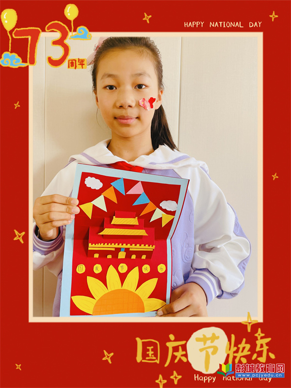 隊(duì)員們用自己的雙手為祖國(guó)母親獻(xiàn)上一份生日禮物,進(jìn)一步激發(fā)了愛國(guó)熱情,同時(shí)展示了他們的才華,提高了審美和創(chuàng)造能力。