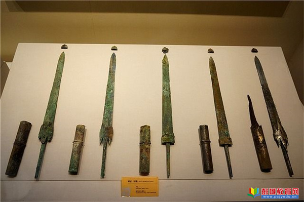 “九里山前古戰(zhàn)場(chǎng),牧童拾得舊刀槍”。徐州博物館的古兵器展廳“金戈鐵馬”的兵器陳列依照歷史演進(jìn),分別展出從原始的石斧、箭簇、刀戟等十八般兵器,足為歷代戰(zhàn)爭(zhēng)的鐵據(jù),人文傳承的見證。