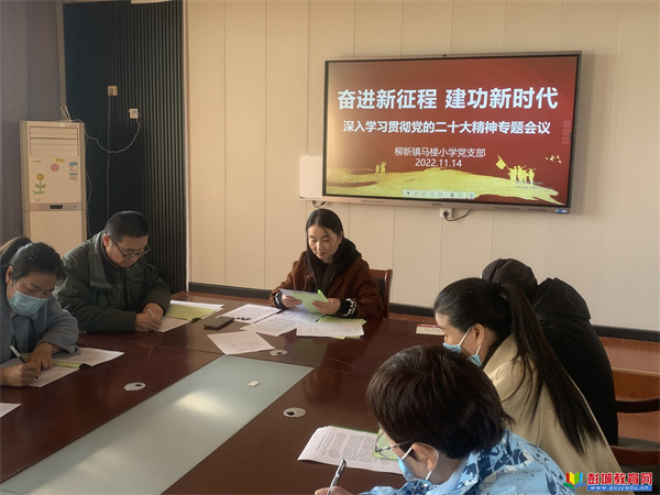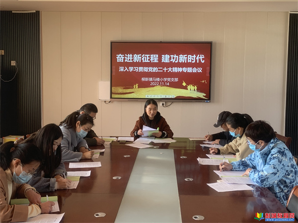 黨的二十大勝利召開,港務(wù)區(qū)柳新鎮(zhèn)馬樓小學(xué)迅速掀起學(xué)習(xí)宣傳貫徹黨的二十大精神熱潮。11月14日上午,馬樓小學(xué)黨支部召開全體黨員會(huì)議,開展黨的二十大精神專題學(xué)習(xí)。會(huì)議由楊艷紅校長主持,全體黨員教師參加。