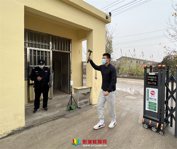一名“歹徒”以找孩子為借口,欲沖進(jìn)校園。保安發(fā)現(xiàn)歹徒可疑行為,立即向前盤問,值班領(lǐng)導(dǎo)立即拉開警報(bào)聲通知操場上的各班級做好安全保護(hù)工作。