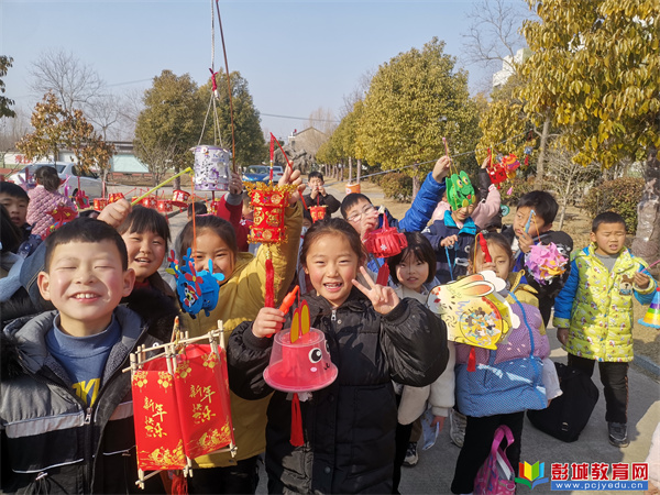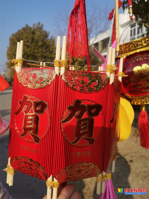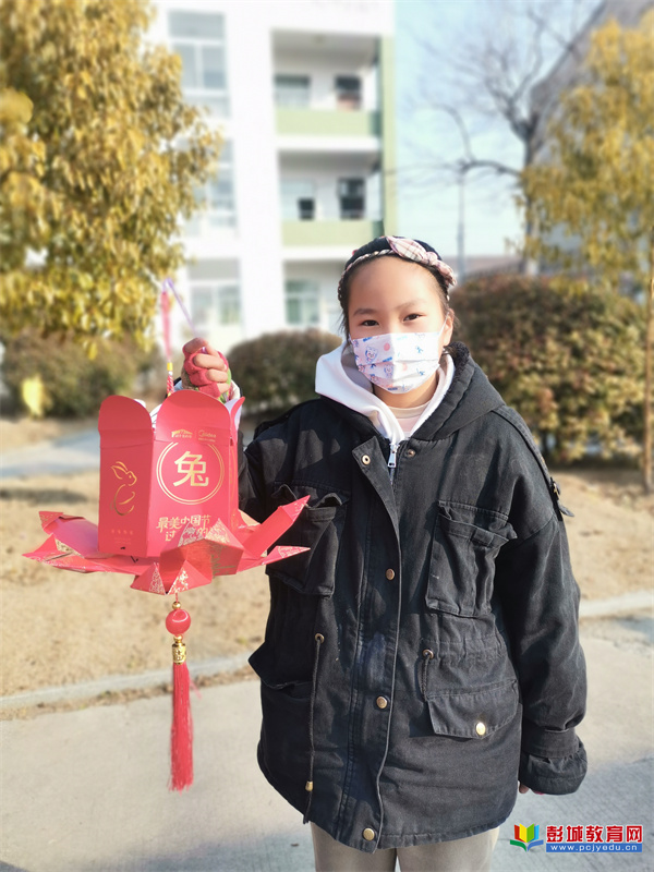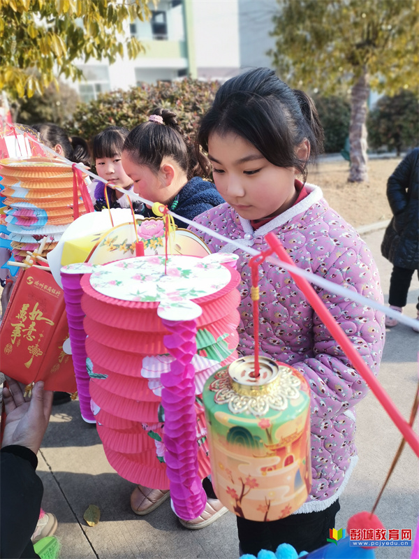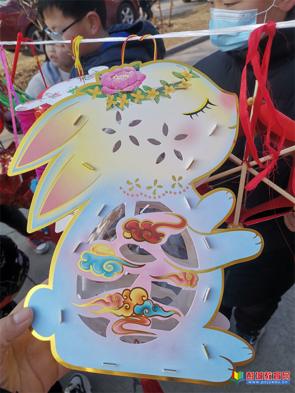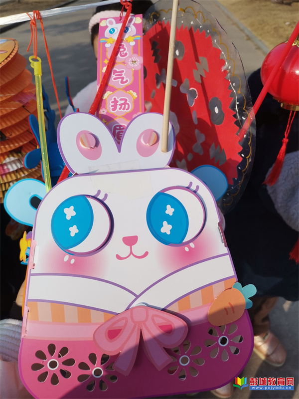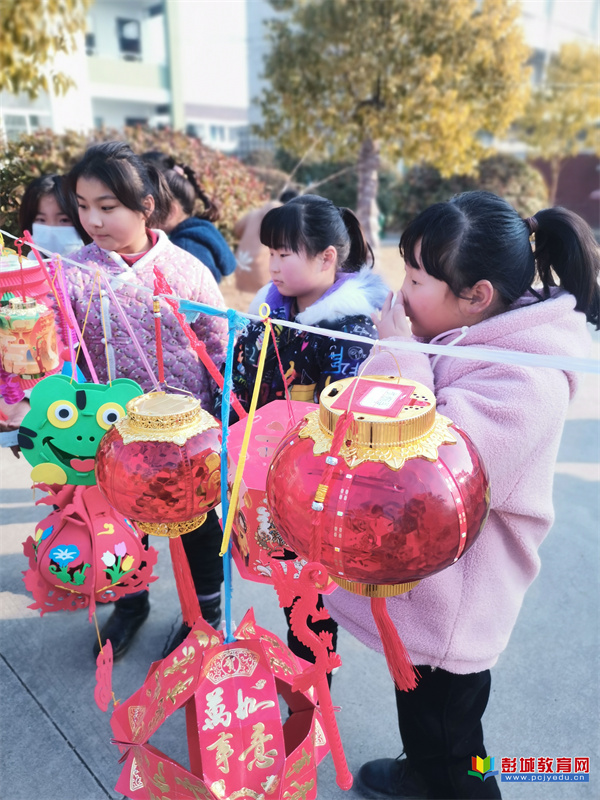 一走進(jìn)校園,就能感受到濃濃的過(guò)節(jié)氛圍:教室內(nèi)外或擺或掛著各式各樣造型奇特的燈籠,其中很多都是同學(xué)們利用空余時(shí)間和家長(zhǎng)一起動(dòng)手制作的:有壓歲包燈籠、折紙燈籠、手繪燈籠、兔子燈等等。大家三五成群的聚集在一起;個(gè)個(gè)臉上洋溢著幸福的笑容。