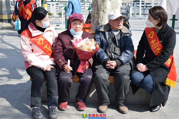 社區(qū)小廣場上,有一些老年人孤獨地坐在長椅上曬太陽。學校黨員教師主動與各位老人拉拉家常、噓寒問暖,關切的詢問他們的生活情況,老人們感受到了真正的關心,臉上洋溢著幸福的微笑。一次志愿服務就是一次愛的奉獻。