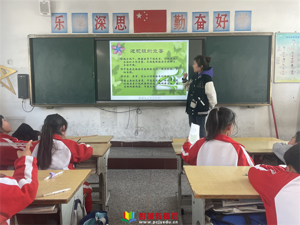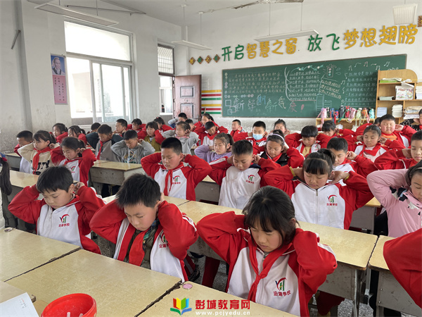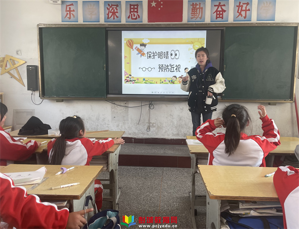 師生堅持做眼保健操。每天上、下午做眼保健操,使眼部得到充分休息,防止近視發(fā)生。學生們聽著音樂,跟著節(jié)奏,做得很認真。