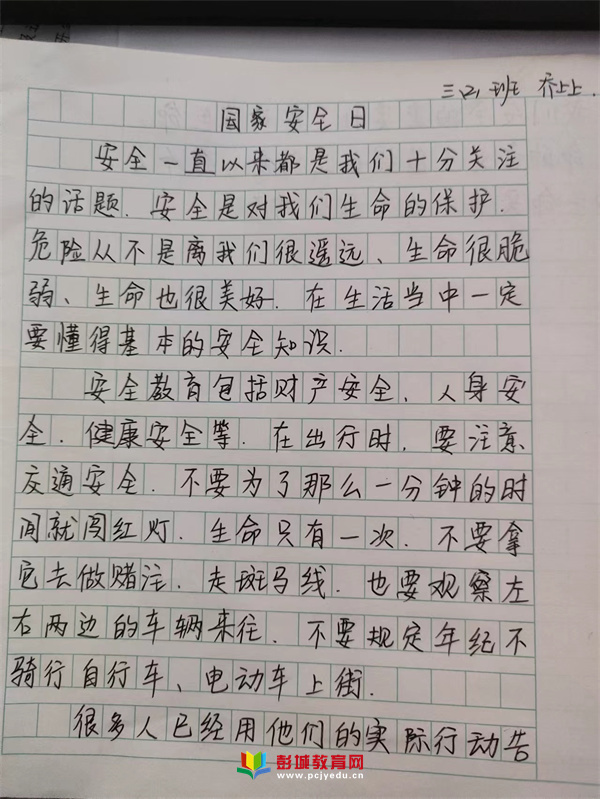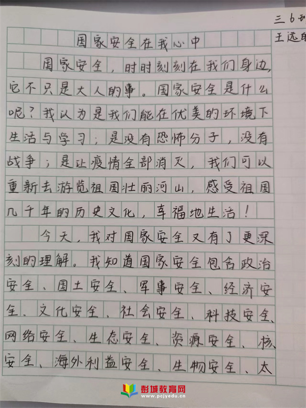 ??在周一的升旗儀式上,安保處薛佩主任國(guó)旗下講話進(jìn)行安全教育。為了讓學(xué)生更好的了解安全知識(shí)的重要性,學(xué)校還通過(guò)LED電子顯示屏加強(qiáng)“國(guó)家安全教育”知識(shí)宣傳,各班召開(kāi)了安全主題班會(huì),孩子們還制作了精美的安全教育日手抄報(bào),家長(zhǎng)和同學(xué)們一起觀看安全教育線上直播,認(rèn)真記錄,孩子還寫(xiě)下了自己的感想。