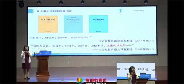 學會閱讀活動分為專家報告、典型學校經(jīng)驗分享、整本書閱讀示范課、專家點評四個環(huán)節(jié)。上午的專家報告以較高的水平分析學生的閱讀現(xiàn)狀,讓尚在迷茫的年輕教師醍醐灌頂,同時也讓她們認識到閱讀的必要性。