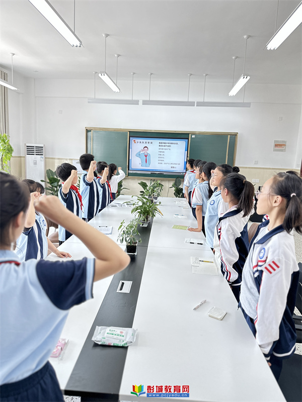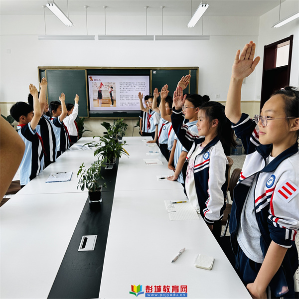 當(dāng)聽到大隊(duì)委帶領(lǐng)呼號(hào)“準(zhǔn)備著,為共產(chǎn)主義事業(yè)而奮斗!”時(shí),同學(xué)們精神抖擻,齊聲回答:“時(shí)刻準(zhǔn)備著!”