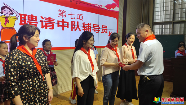 隨后大隊輔導(dǎo)員宣讀中隊輔導(dǎo)員名單。紅領(lǐng)巾是隊旗的一角,是用革命烈士的鮮血染成的。在這重要的時刻,該校五年級少先隊員一起為全體新隊員佩戴鮮艷的紅領(lǐng)巾,這是同學(xué)們第一次佩戴紅領(lǐng)巾并面向隊旗敬隊禮。佩戴上紅領(lǐng)巾的隊員們站姿挺拔、心潮澎湃,臉上都綻放出了燦爛的笑容。