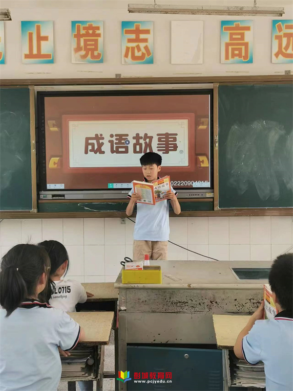 最后,我們的許校長(zhǎng)為本次活動(dòng)做了總結(jié)。他告訴我們,成語(yǔ)是我們中華民族的文化瑰寶,我們要去繼承并發(fā)揚(yáng)光大。在講成語(yǔ)故事時(shí),我們要再大膽一些,不怯場(chǎng),用洪亮的聲音和豐富的肢體語(yǔ)言來(lái)講好每一個(gè)有趣的成語(yǔ)故事。