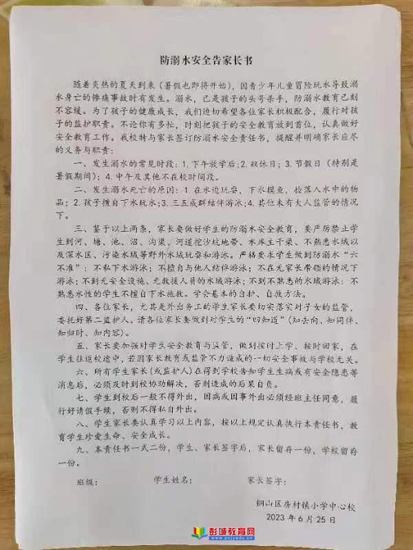 [摘要]:彭城教育:暑期即將來(lái)臨,為了進(jìn)一步強(qiáng)化幼兒園“防溺水”安全工作,增強(qiáng)全體家長(zhǎng)和幼兒的安全責(zé)任感。在各班老師的組織下,房村鎮(zhèn)尚王幼兒園邀請(qǐng)全體家長(zhǎng)簽訂《防溺水安全責(zé)任書(shū)》,全面落