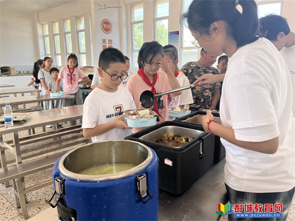 在經(jīng)歷教與學(xué)的重重難關(guān)之后,支教團隊員帶領(lǐng)學(xué)生前往食堂就餐。支教團成員不僅大飽口福,還收獲了為學(xué)生們打餐的全新體驗。經(jīng)歷辛勤勞動后,隊員們深刻感受到“誰知盤中餐,粒粒皆辛苦”的內(nèi)涵。