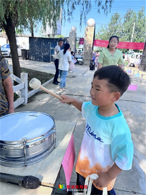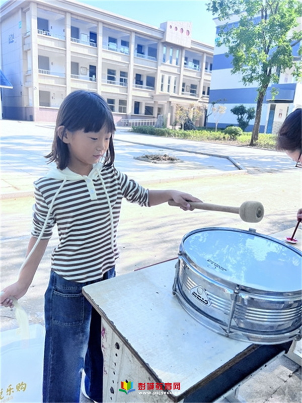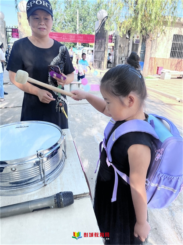 隨后,孩子們“擊鼓明志”,擊鼓的聲音越大,聲音越響,傳播的越遠,代表孩子們的志向越遠大。