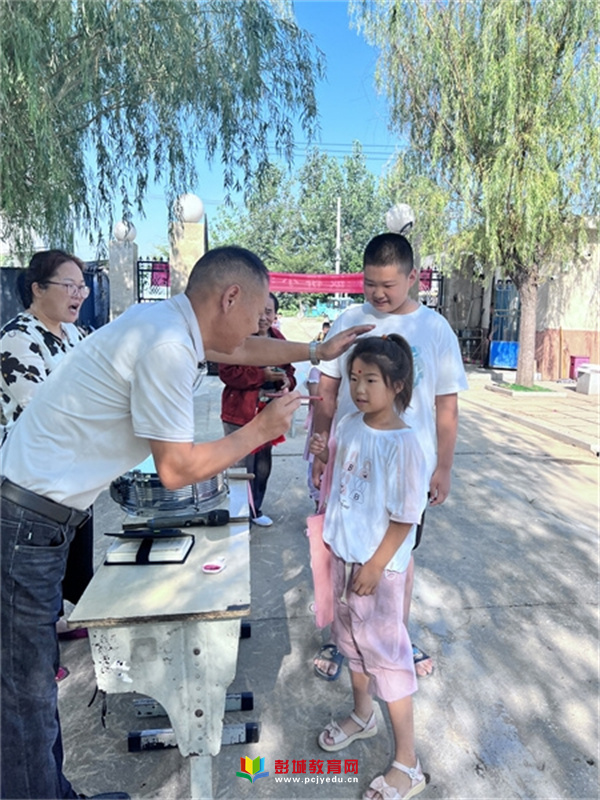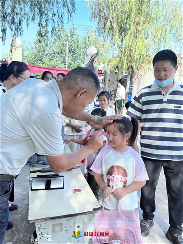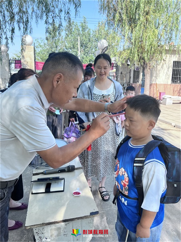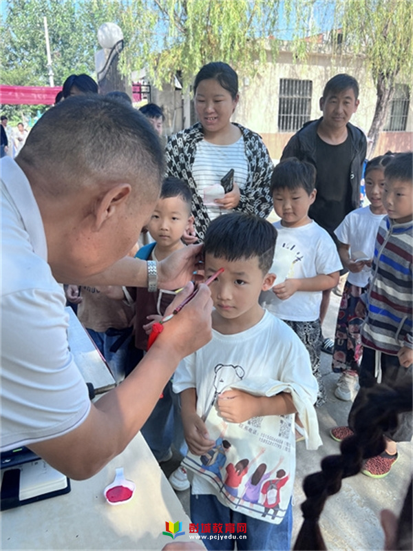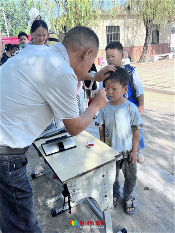 緊接著,耿超校長為孩子們進行“朱砂啟智”,輕輕地一點,一抹紅色便呈現(xiàn)在孩子們的額頭中間。點朱砂,啟智慧,明禮知規(guī)好少年!