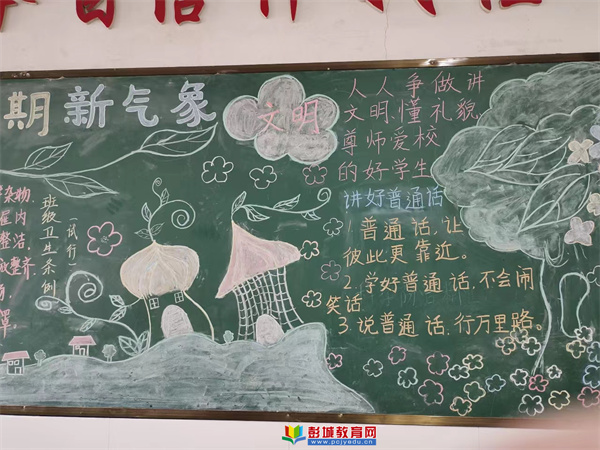 學(xué)校通過黑板報宣傳,國旗下講話,主題班會課等形式,開展了豐富多彩的系列活動。升旗儀式上,丁悅主任號召每一位同學(xué)說好普通話,使普通話成為校園用語,在各種場合使用文明用語,不說粗話和臟話,做新時代的推普員。