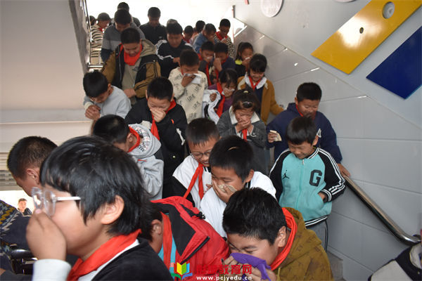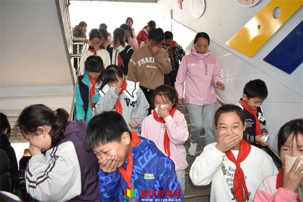 警鈴響起,全體教職工立即停下手中的工作,到達各自負責的位置。孩子們在老師組織下捂住口鼻,彎腰低身,按照逃生路線有序逃生。