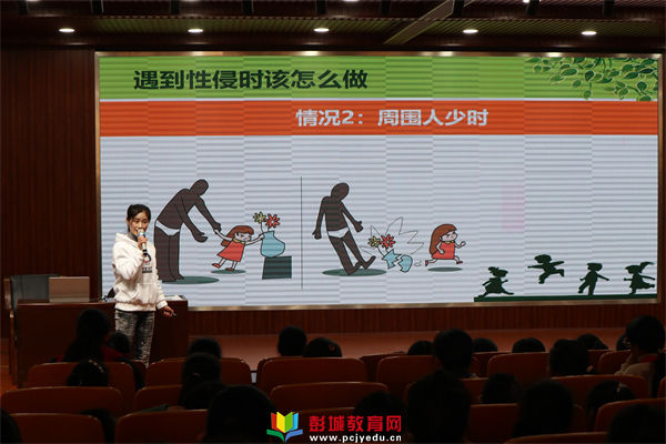 本次講座在“誰(shuí)是我的好朋友,她在哪里”的互動(dòng)環(huán)節(jié)開(kāi)始,楊老師以幽默詼諧、親切有趣的語(yǔ)言先后向女孩子們介紹了如何分辨性侵害、如果防止性侵害、如何防范性侵害、怎樣應(yīng)對(duì)以及遇到后該怎么辦等方面進(jìn)行講座。同學(xué)們積極勇敢大方的面對(duì)預(yù)防性侵這個(gè)話題。