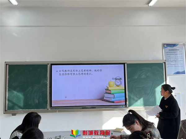 2023年11月21日下午,在語文組教師舉行的讀書分享會(huì)上,黃瓊老師給大家分享了吳非的《不跪著教書》。