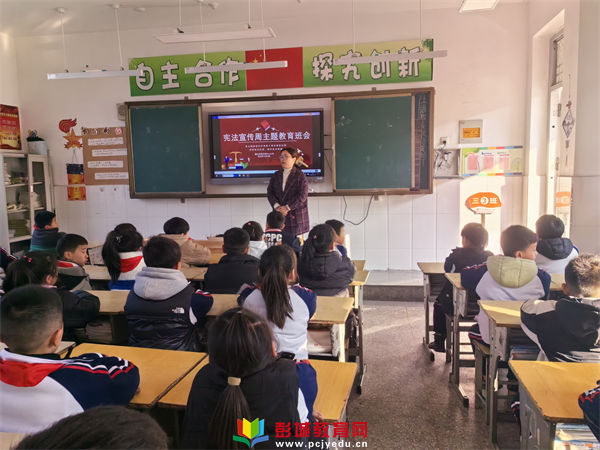 下午,各班主任利用班會課時間,向同學們介紹了我國憲法的發(fā)展過程、基本內容等,教育學生要學法、知法、守法,學會運用法律保護自己,課堂氣氛活躍,孩子們獲益匪淺。最后,老師們布置了一項特殊的作業(yè),要求孩子們回家把今天學到的憲法知識講給爸爸媽媽聽,帶動整個家庭知憲法、懂憲法、守憲法。