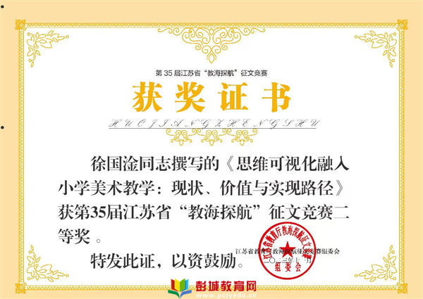 徐國淦老師分別獲得江蘇省“教海探航”征文競(jìng)賽二等獎(jiǎng);江蘇省“師陶杯”論文評(píng)選一等獎(jiǎng)。