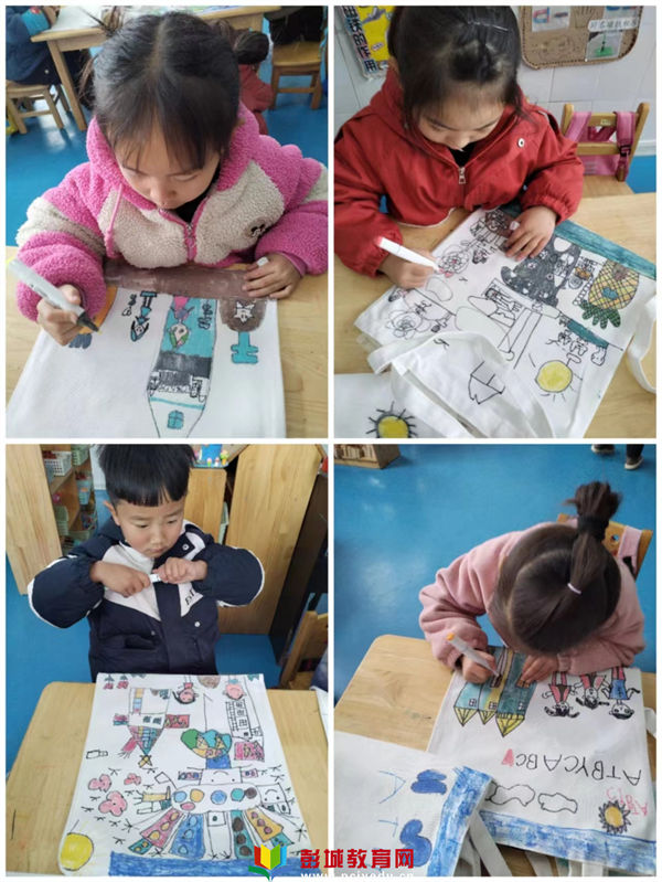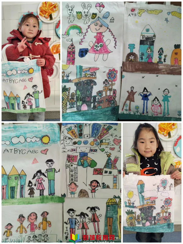 ??掌握技巧的孩子們很快就投入到繪畫當中,還時不時的和其他小伙伴交流互動:“這里涂綠顏色的、那里涂藍顏色的......”經過1個多小時的時間,一個個精致美麗的手提袋展示在大家面前。小朋友們表示有了這個小小手提袋,可以裝一些日常用品,減少對塑料袋的依賴。
