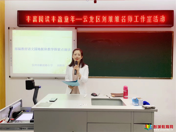 劉維維老師從教22年,長期奮斗在語文教學(xué)第一線。為進(jìn)一步加強(qiáng)教育質(zhì)量內(nèi)涵建設(shè),提高師資隊(duì)伍整體素質(zhì),曾作為解放路小學(xué)教育集團(tuán)語文學(xué)科大教研組長,每周固定時(shí)間在集團(tuán)校本部及分校下河頭小學(xué)、新元小學(xué)旁聽青年教師常規(guī)課并參與指導(dǎo)點(diǎn)評(píng)。2019年2月,被評(píng)為云龍區(qū)名師工作室首席名師。工作室以名師公開教學(xué)、研討會(huì)、報(bào)告會(huì)、專題講座等形式向外輻射,示范引領(lǐng)云龍區(qū)學(xué)校教學(xué)質(zhì)量的提高和教師的專業(yè)成長。工作室圍繞研修主題開展教科研活動(dòng),用課題助力教師成長,將言語交際理論運(yùn)用到閱讀教學(xué)的改革中,努力構(gòu)建指向言語交際的小語閱讀教學(xué)實(shí)踐模式。形成“合作?共生”的創(chuàng)新型教師團(tuán)隊(duì)。以提高全體教師的整體學(xué)術(shù)水平和教學(xué)業(yè)務(wù)能力。