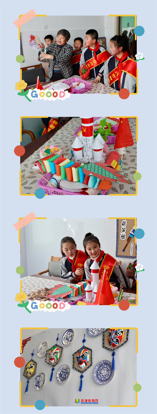 ??隊(duì)員們的到來(lái)讓平日里安靜的敬老院熱鬧了起來(lái)。老人們沐浴著春日的陽(yáng)光,感受著小小志愿者們的蓬勃朝氣,臉上洋溢著幸福的微笑。閆主任和黃老師帶領(lǐng)隊(duì)員參觀敬老院,并熱情地講解敬老院的設(shè)施和老人們的作品。