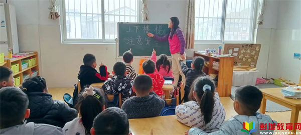 “小朋友們要排隊(duì)。”“不推不擠不打鬧。”“上下樓梯靠哪一邊走?”“在樓梯上怎樣不摔跤?”……一個(gè)接一個(gè)的問題化作小問號(hào)圍繞著孩子們。通過視頻、兒歌、圖片等形式與孩子們一起探討,讓孩子們結(jié)合自身經(jīng)驗(yàn)找到正確答案:上下樓梯靠右走、不擁擠、不推拉、不搶先,安全上下記心間,讓孩子們了解到上下樓梯的正確方法,進(jìn)一步明確了上下樓梯的安全常識(shí)。
