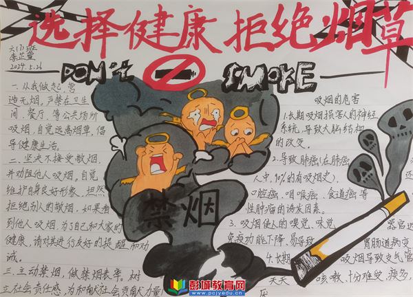 學生們拿起自己的畫筆和工具,制作手抄報,時刻提醒人們禁止吸煙,保護自己和他人的健康。