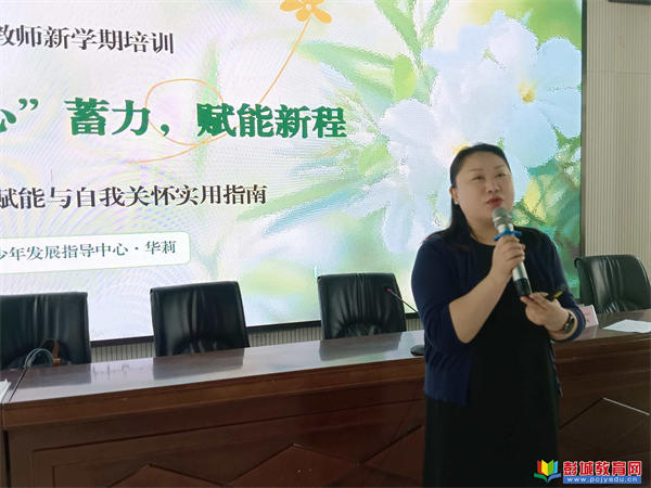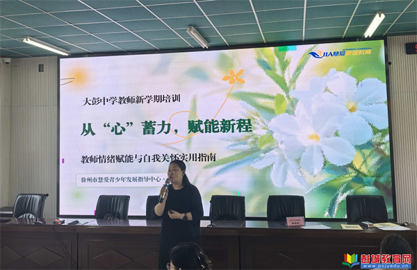 ??新學(xué)期臨近,為破解教師教學(xué)中的情緒困境,助其以積極心態(tài)、飽滿狀態(tài)投入工作,大彭中學(xué)邀請徐州市慧愛青少年發(fā)展指導(dǎo)中心導(dǎo)師華莉,推出“教師情緒賦能與自我關(guān)懷實用指南” 專題培訓(xùn),以專業(yè)支持守護教師心理健康,為教育質(zhì)量提升注入 “心” 動力。