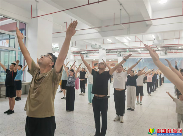 高溫天氣,參訓(xùn)教師們汗水順著臉頰滑落,卻沒人停下腳步。教師們列隊練習(xí),伸展、扭轉(zhuǎn)、跳躍,重復(fù)多輪后,衣衫被汗水浸透,貼在后背勾勒出專注的輪廓,但每個人都格外認真,只為守護學(xué)生運動安全的初心。