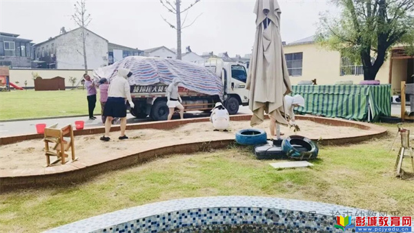 大家分工明確,默契配合,從操場(chǎng)到教室,從功能室到戶外游戲區(qū),每一處空間都在老師的巧手下褪去舊塵,換發(fā)新顏。