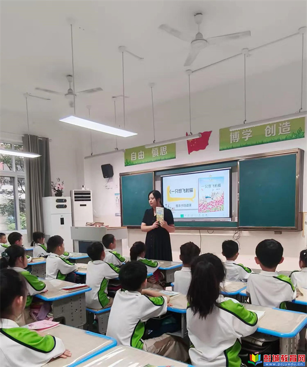 “閱”讀,“悅”美,東坡有言:腹有詩(shī)書(shū)氣自華,讀書(shū)萬(wàn)卷始通神。為了讓學(xué)生感受書(shū)香的魅力,課堂上楊老師給孩子們介紹著這本書(shū),孩子們和自己的小伙伴們聚在一起,認(rèn)真傾聽(tīng),積極探討……