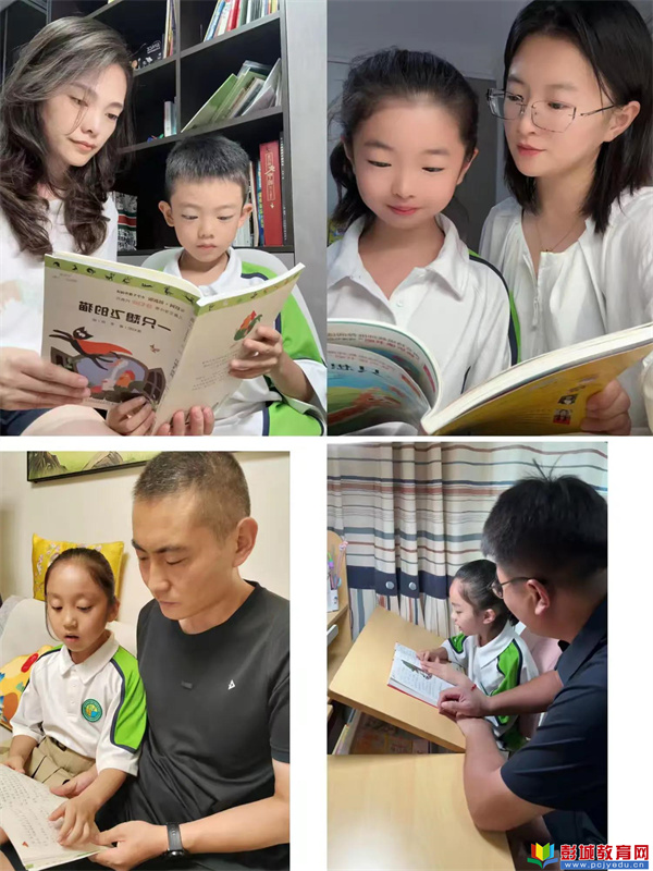 不光在學(xué)校讀,回到家,孩子們還與爸爸媽媽一起進(jìn)行親子共讀。