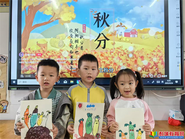 孩子們用自己甜美的聲音、五彩繽紛的畫筆,表達(dá)自己對(duì)秋天的喜愛(ài)和贊美,也感知了秋分農(nóng)民伯伯豐收的辛苦。
