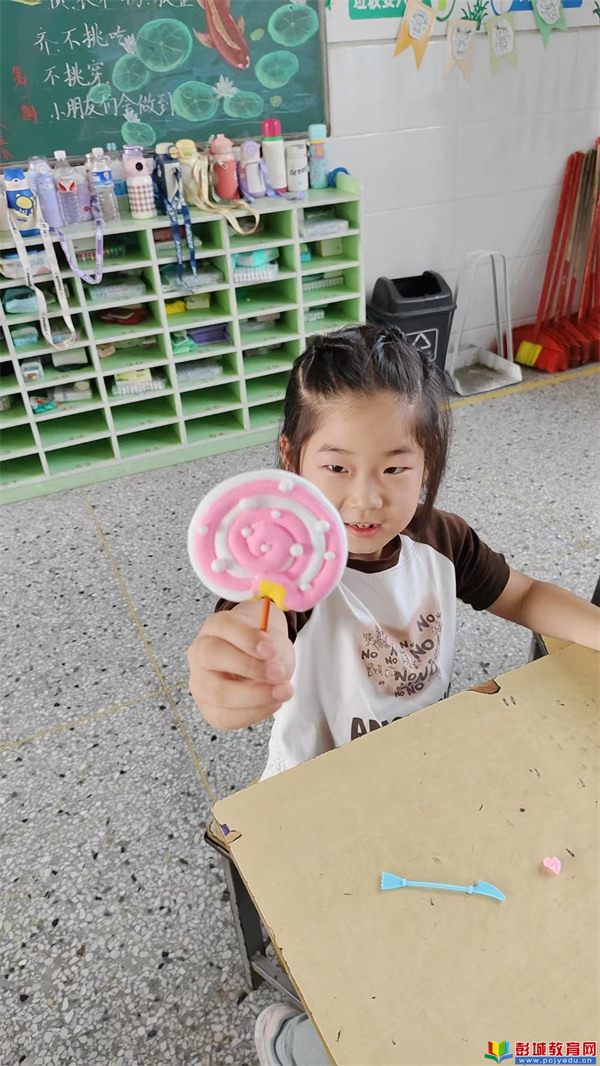 當(dāng)一個(gè)個(gè)色彩繽紛、造型各異的橡皮泥棒棒糖在孩子們手中誕生時(shí),他們興奮地舉起作品,臉上洋溢著滿滿的成就感。整個(gè)教室仿佛變成了一座甜蜜的“糖果樂(lè)園”,充滿了童真的歡聲笑語(yǔ)。